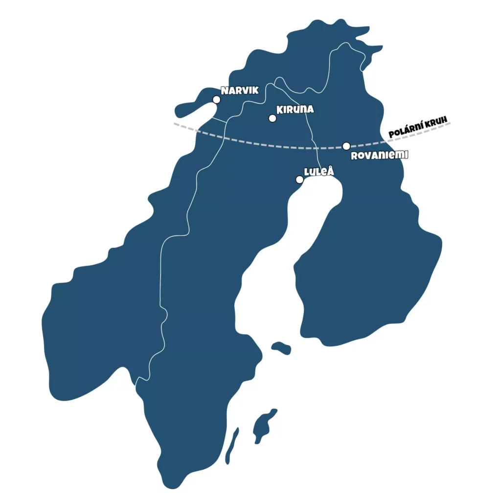 Švédsko, abisko ✦ norsko, lofoty ✦ švédsko, kiruna ✦ finsko, rovaniemi ✦